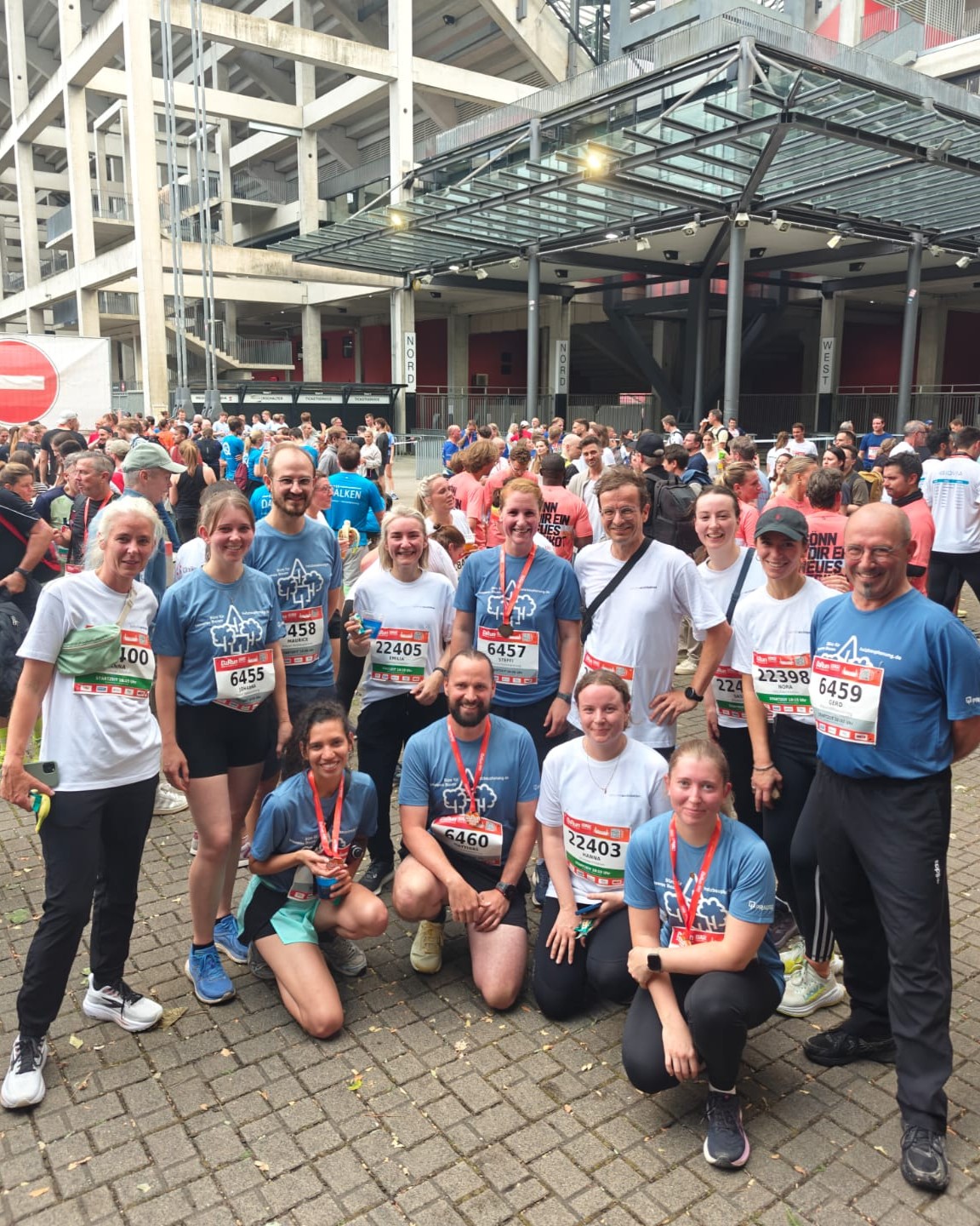 und meisterten die 6 km rund um das RheinEnergieSTADION bei bestem Laufwetter. Im Ziel haben wir noch unsere Nachbarn von Holzbau Prause getroffen und die Gelegenheit für