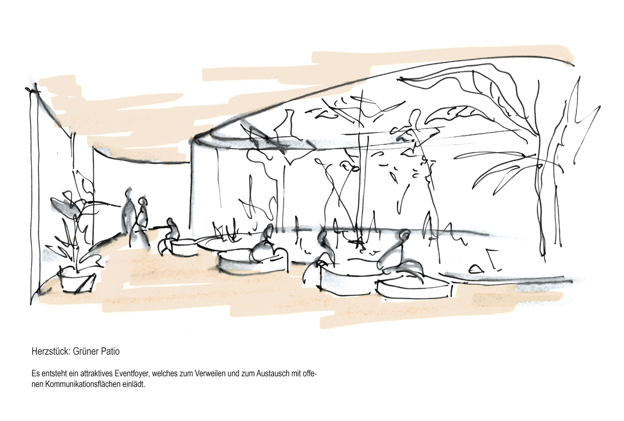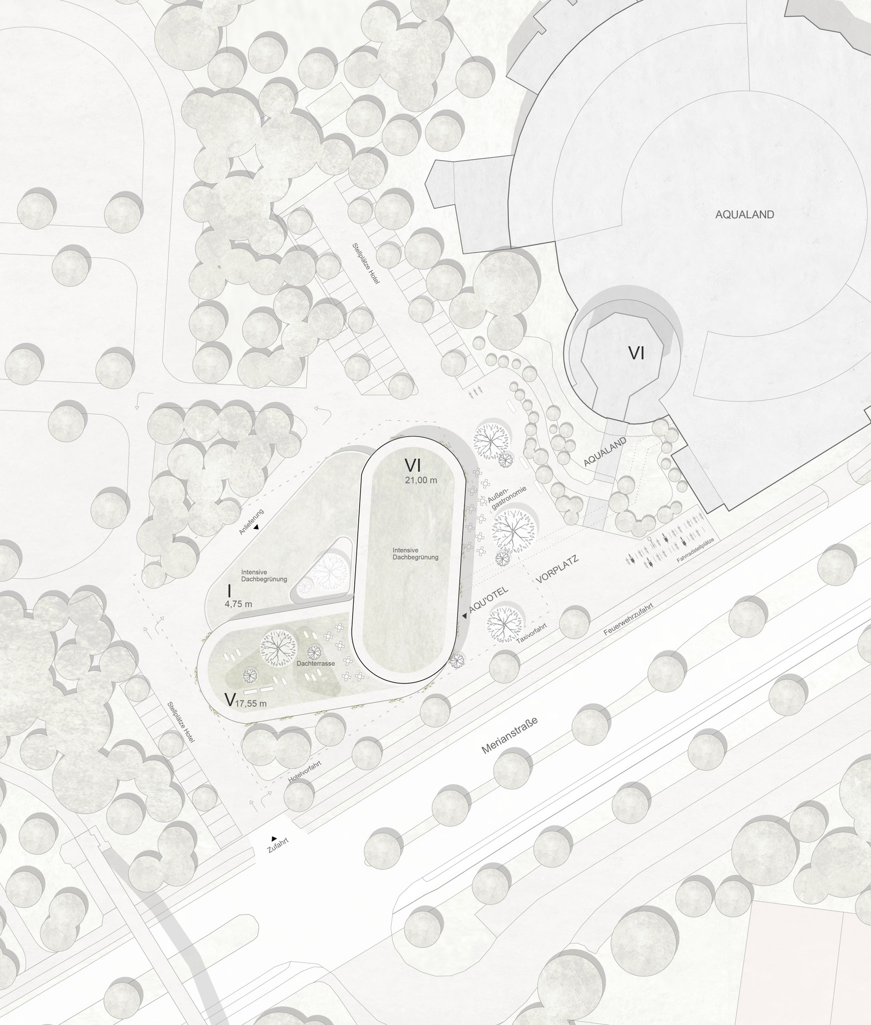 die Gebäudekubatur der Obergeschosse und weitet sich nach Norden auf. Hier sind alle öffentlichen Nutzungsbereiche platziert.