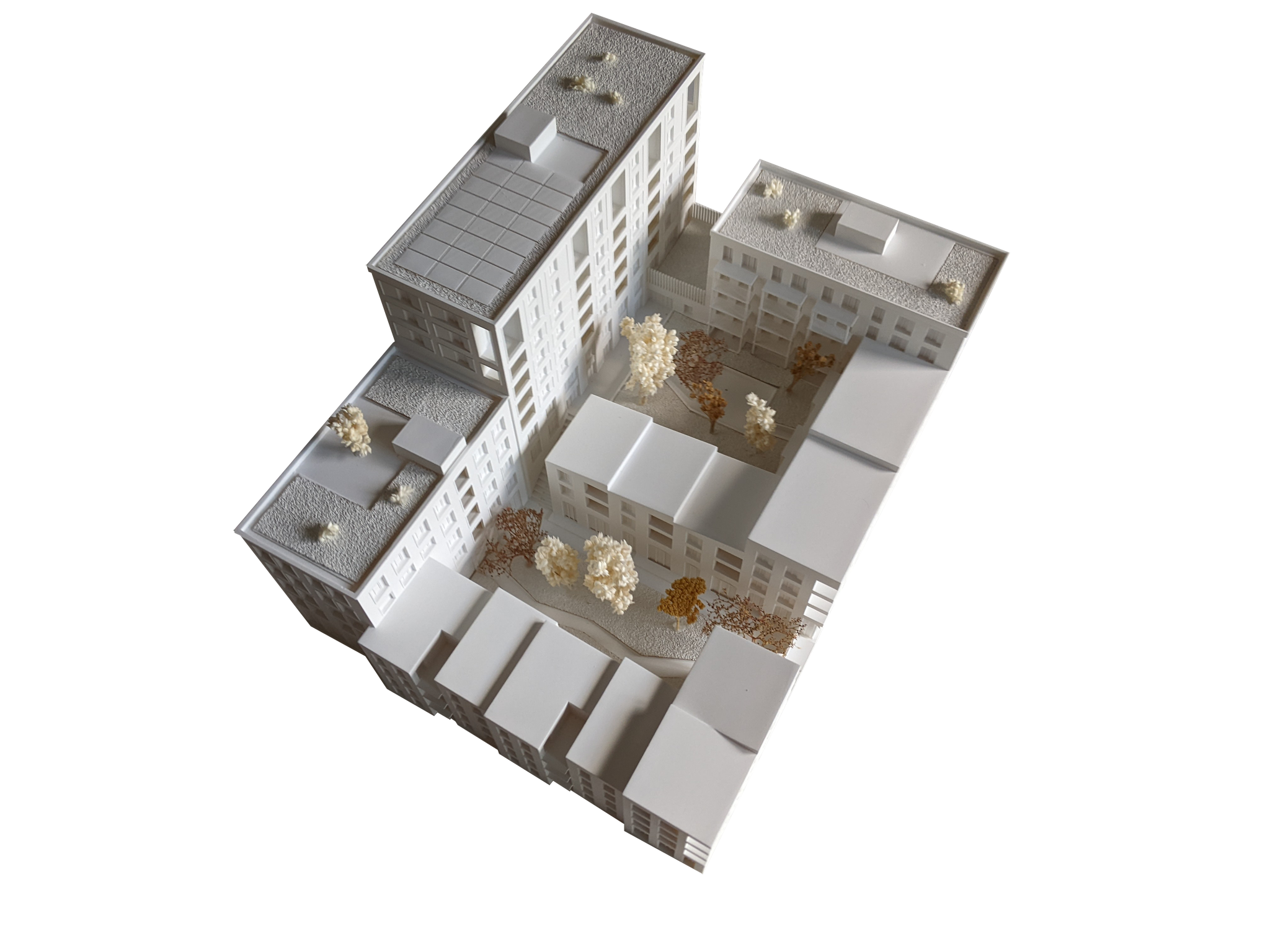 Gemeinschaftswohnungen, davon mehr als 50% soziale Mietwohnungen, 10 Wohnungen für Menschen mit Behinderung | 2000 m² Bürofläche | 200m2 Gewerbeflächen | Rückbaufähiger